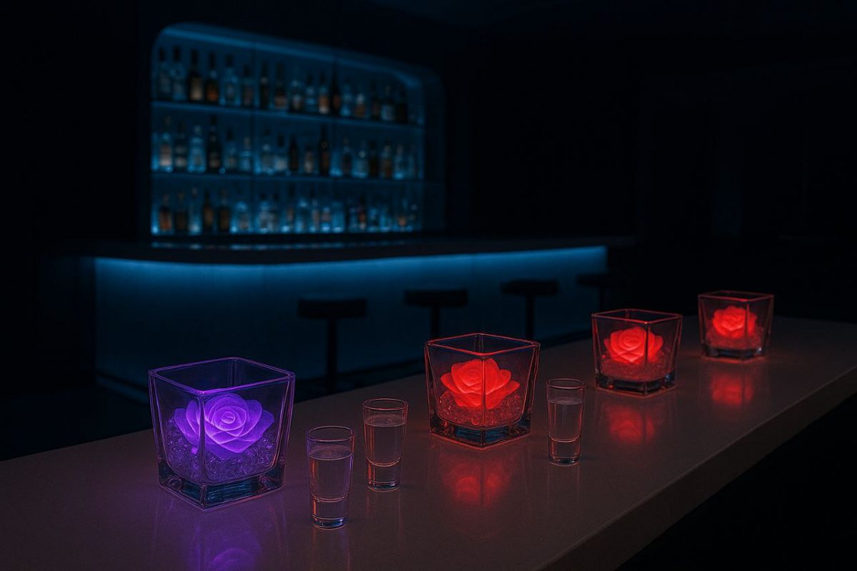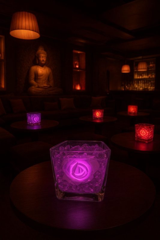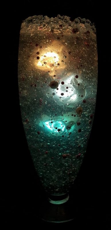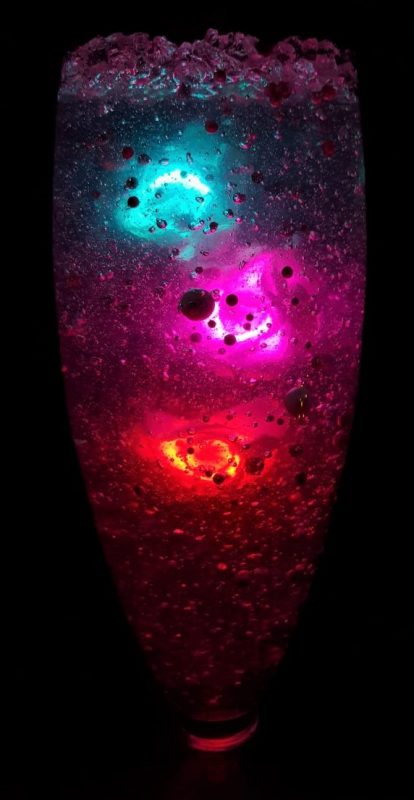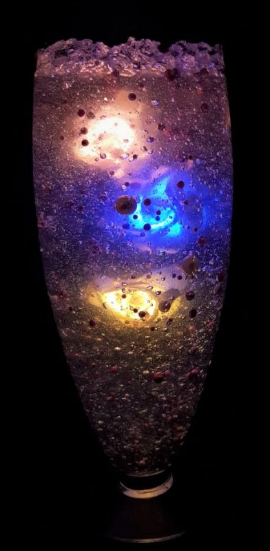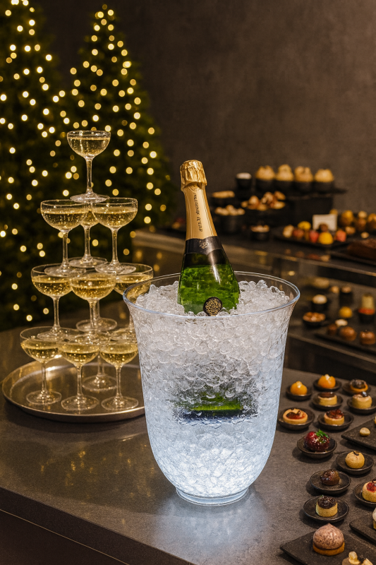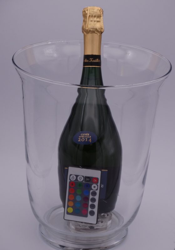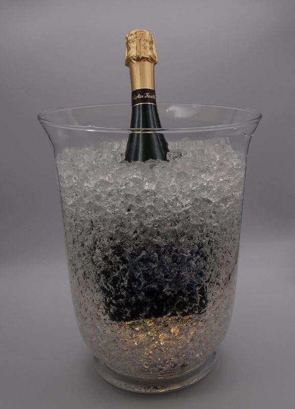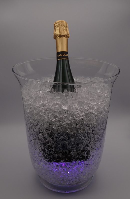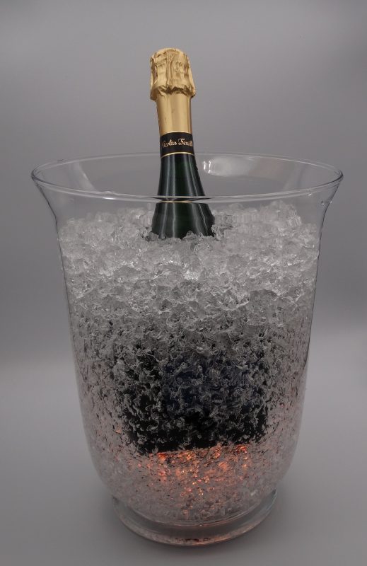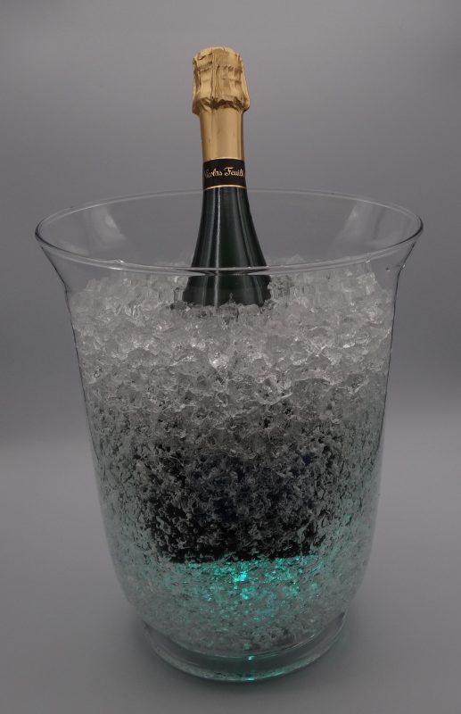 Pour un effet grandiose, présentez vos bouteilles de champagne dans du Cristal Deco blanc et plongez-y une lumière submersible : Effet Whaou garantie !