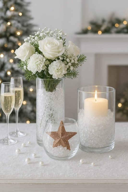 Utilisez le Cristal Deco dans vos bougeoirs, boules suspendues, coupes hautes, réalisez des couleurs pastels ou laissez les grains blanc pour une déco tendre.